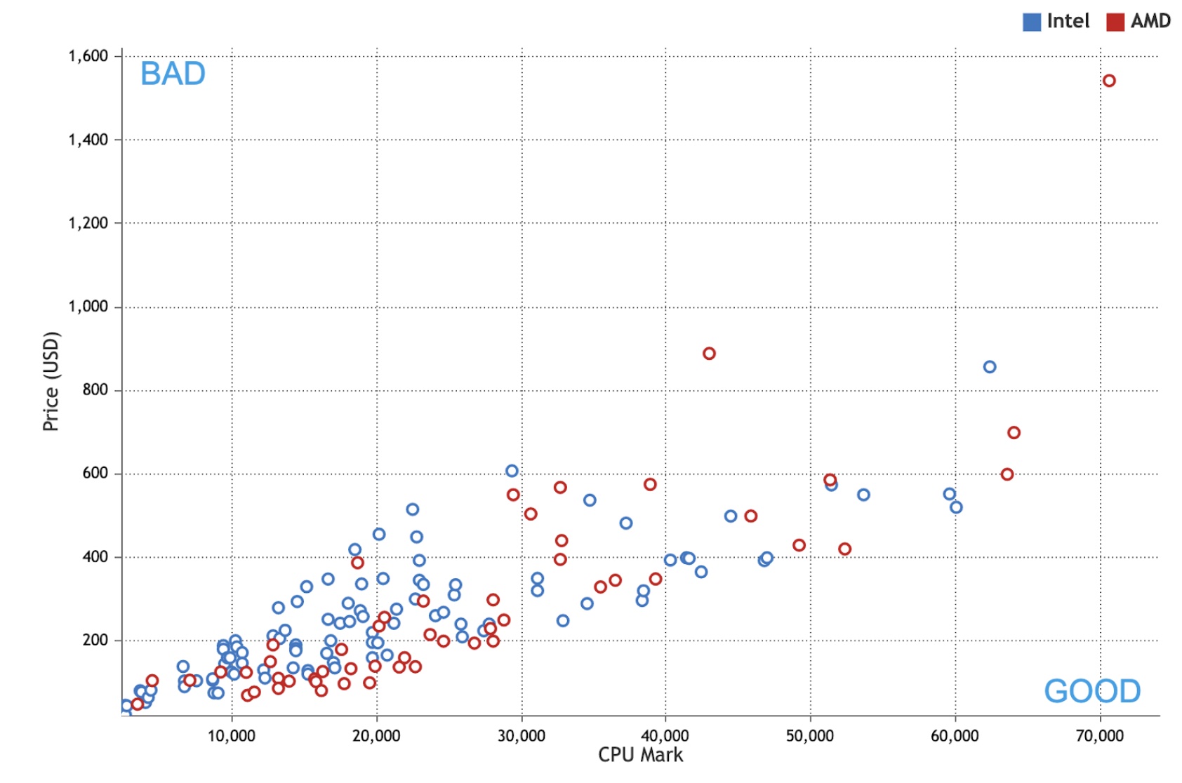 Learn MoreTypically, a higher product price should correlate with better quality, features and/or performance. Take for example computer CPUs: The higher the cost of the CPU, the better the performance. The graph below chart illustrates that very well: