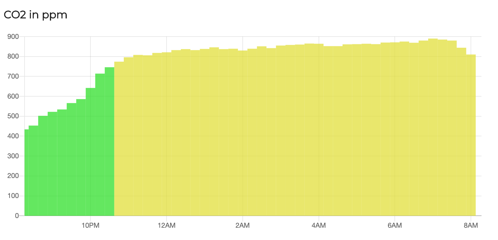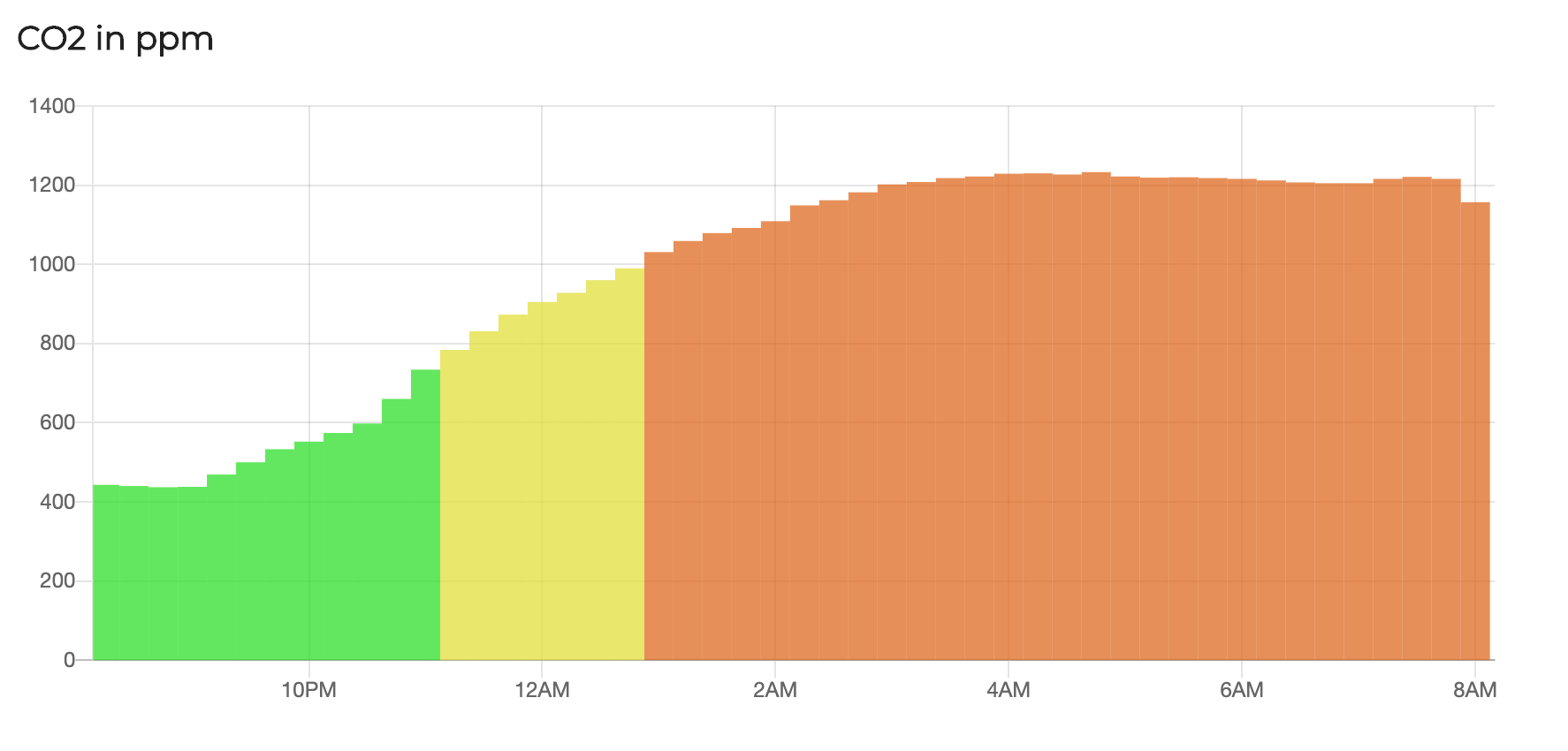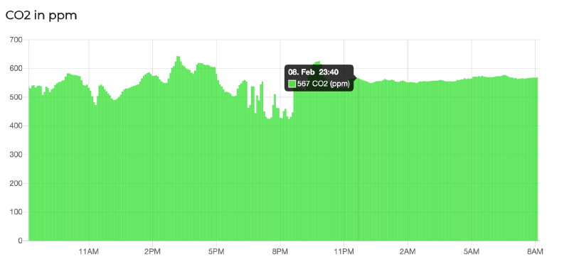 You can see that CO2 levels increase quite substantially throughout the night and hover around 1200ppm.