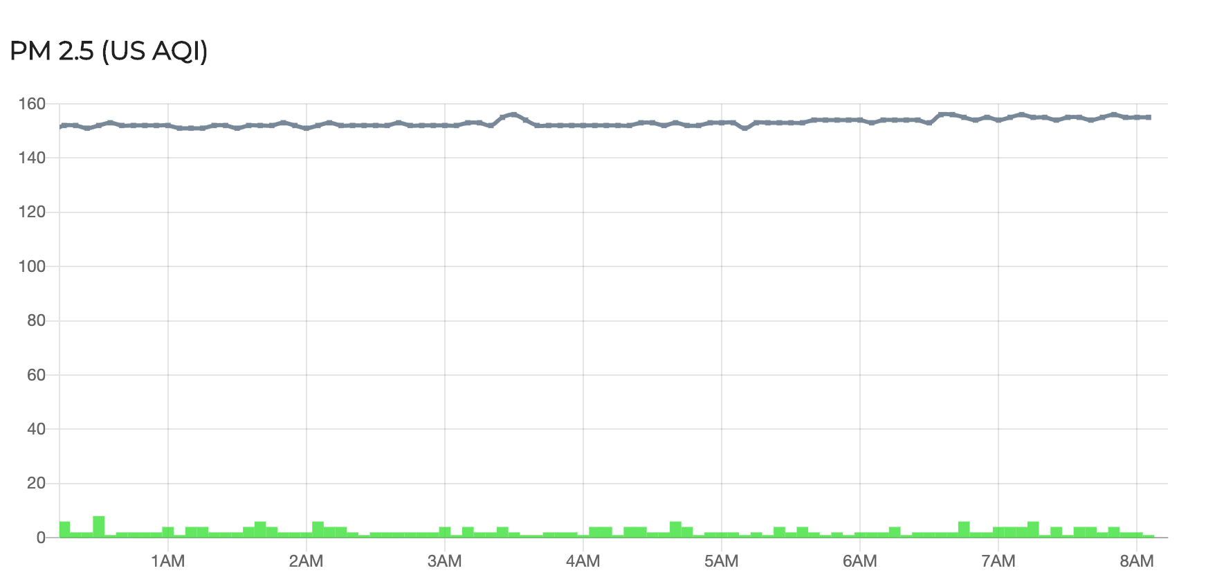 In the above PM 2.5 chart, you can still detect a very small amount of pollution in a room. If you ensure that your bedroom is additionally sealed, you can actually achieve a flat-line. Below shows another very well sealed bedroom.